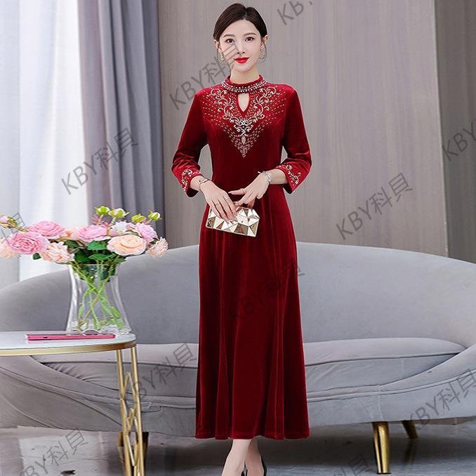 優寶購物《ubao.Tw》特貨品商城,黑貓宅配,取貨付款,喜婆婆婚宴裝秋款金絲絨洋裝高貴洋派改良旗袍結婚女方媽媽禮服媽媽禮服洋裝-kby科貝 | Yahoo拍賣