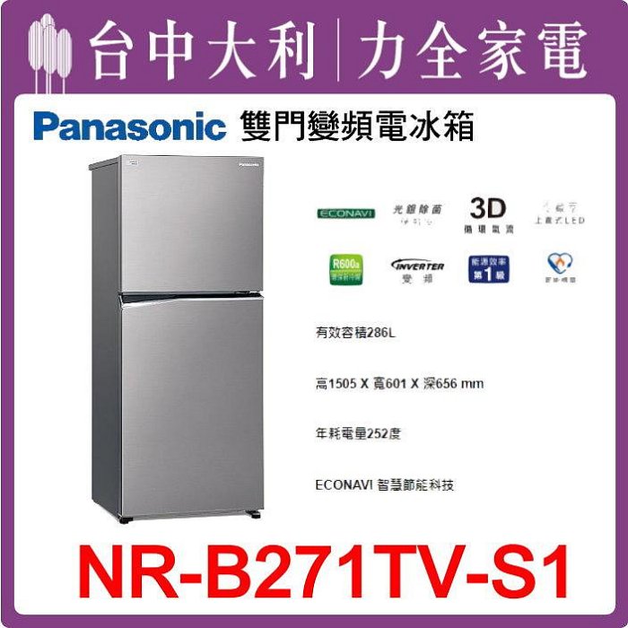 優寶購物《ubao.Tw》特貨品商城,黑貓宅配,取貨付款,【NR-B271TV】268公升雙門冰箱【Panasonic國際】 【台中大利】先私訊問貨 | Yahoo拍賣