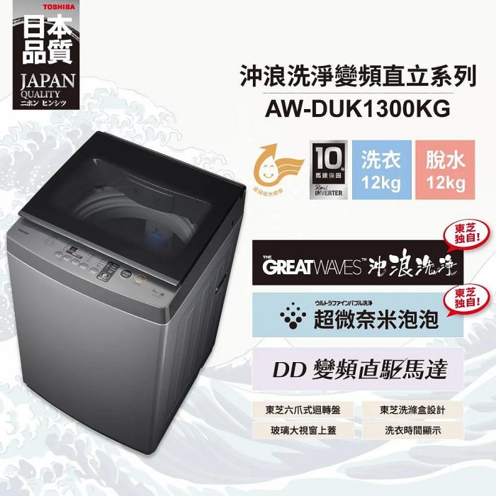 優寶購物《ubao.Tw》特貨品商城,黑貓宅配,取貨付款,TOSHIBA東芝 12KG 直立式 超微奈米泡泡 變頻洗衣機 AW-DUK1300KG | Yahoo拍賣