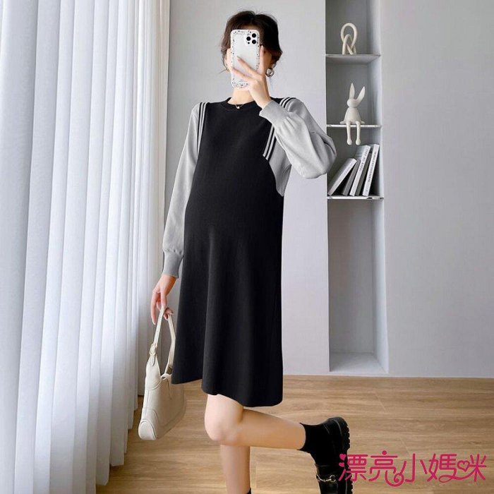 優寶購物《ubao.Tw》特貨品商城,黑貓宅配,取貨付款,漂亮小媽咪【D1449】 春秋 法式 拼接 修身 顯瘦 洋裝 韓系 針織 連衣裙 實拍 孕婦裝 | Yahoo拍賣