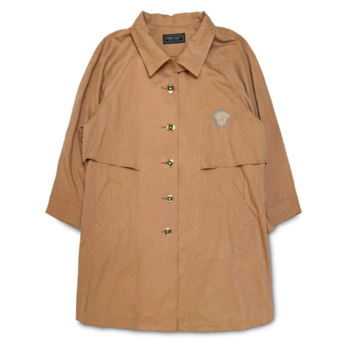優寶購物《ubao.Tw》特貨品商城,黑貓宅配,取貨付款,[稀有品] Versace Couture 凡賽斯走秀款 梅杜莎金釦 深駝色防潑水女生斗篷式長版大衣 日本製M號 | Yahoo拍賣
