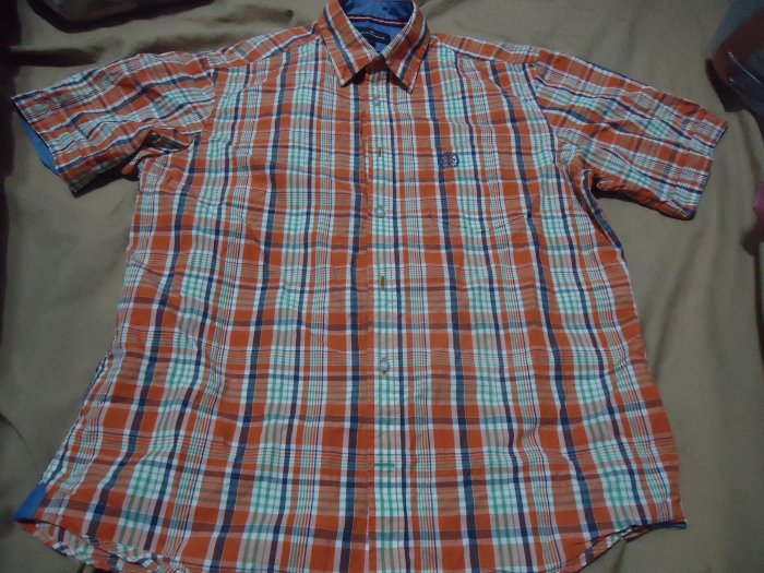 優寶購物《ubao.Tw》特貨品商城,黑貓宅配,取貨付款,Blue Harbour 橘藍綠白格紋短袖襯衫,尺寸M,肩寬48cm胸寬57.5cm,特價大出清 | Yahoo拍賣