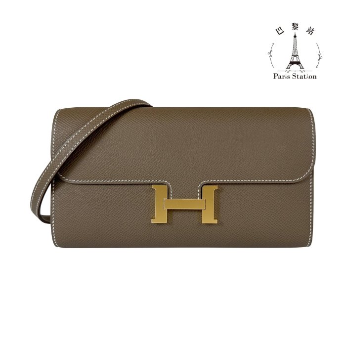 優寶購物《ubao.Tw》特貨品商城,黑貓宅配,取貨付款,【巴黎站二手名牌專賣店】*全新現金優惠*HERMES愛馬仕真品*B刻大象灰金釦ConstanceToGo康康長夾斜背包 | Yahoo拍賣