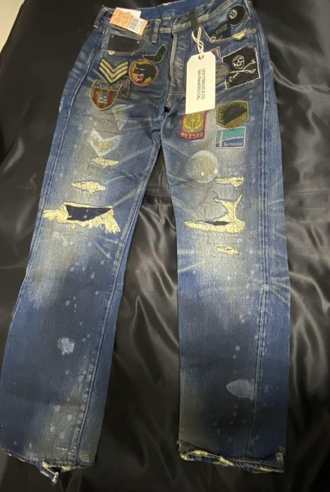 優寶購物《ubao.Tw》特貨品商城,黑貓宅配,取貨付款,【全新拍賣唯一】Levis Levi's LVC 66501 0066 大E 破壞 刀割 縫補 黑豹 徽章 貼布 日本 藝人 | Yahoo拍賣