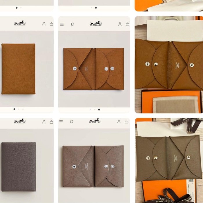 優寶購物《ubao.Tw》特貨品商城,黑貓宅配,取貨付款,已售)愛馬仕 Hermes Calvi Duo卡包 金棕色 大象灰 | Yahoo拍賣