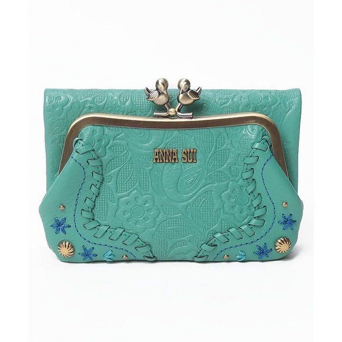 優寶購物《ubao.Tw》特貨品商城,黑貓宅配,取貨付款,現貨不用等ANNA SUI 安娜蘇 超美藍綠色 日式花紋鋼印 花朵鳥語 斷貨款 皮夾短夾中夾 零錢包 口金二つ折り財布 | Yahoo拍賣