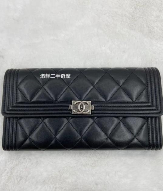 優寶購物《ubao.Tw》特貨品商城,黑貓宅配,取貨付款,淑静二手 Chanel 香奈兒 leboy系列長款 黑銀 羊皮 長夾 | Yahoo拍賣