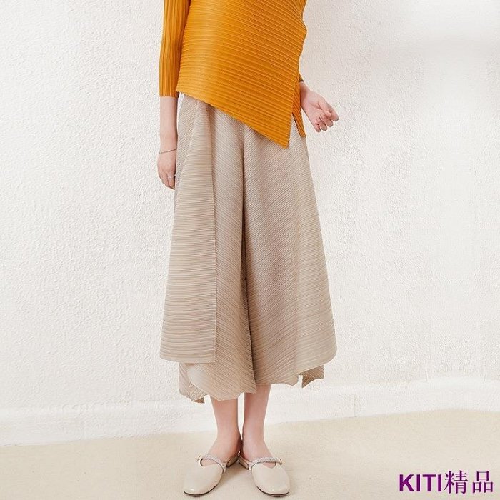 優寶購物《ubao.Tw》特貨品商城,黑貓宅配,取貨付款,【熱賣精選】三宅褶皺褲子女寬鬆大尺碼休閒褲2022夏季新品七分褲鬆緊腰闊腿褲裙 | Yahoo拍賣