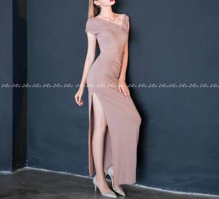 優寶購物《ubao.Tw》特貨品商城,黑貓宅配,取貨付款,§§§ aMOre §§§ 浪漫豆沙藕色 優雅不對稱領圍設計 SEXY開岔婀娜連身長洋裝 ~超值 追加 | Yahoo拍賣