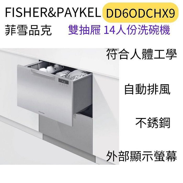優寶購物《ubao.Tw》特貨品商城,黑貓宅配,取貨付款,Fisher&Paykel 菲雪品克 雙層不鏽鋼抽屜式洗碗機(DD60DCHX9)聊聊優惠含基本安裝 | Yahoo拍賣
