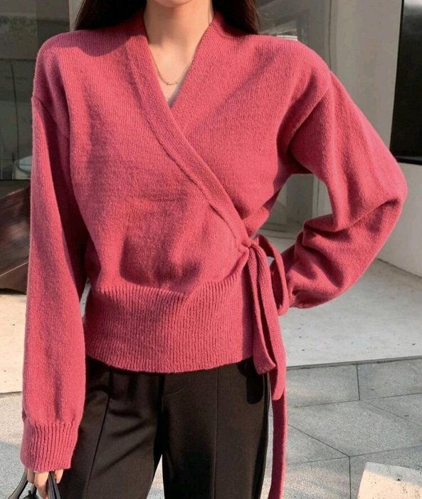 優寶購物《ubao.Tw》特貨品商城,黑貓宅配,取貨付款,☆超級賠售☆全新 玫紅色 V領包身綁帶針織毛衣 ~救救可憐新衣讓它嶄露頭角~ 《好女子的物件Good‘s Goods 》 | Yahoo拍賣
