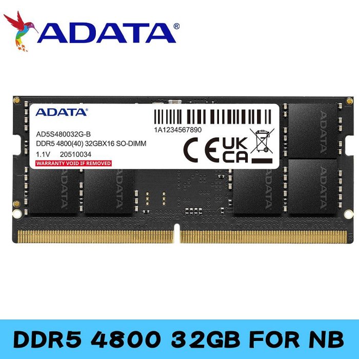 優寶購物《ubao.Tw》特貨品商城,黑貓宅配,取貨付款,☆偉斯科技☆全新 威剛 ADATA DDR5 4800 32G (CL40)筆記型電腦記憶體(AD5S480032G-S) | Yahoo拍賣