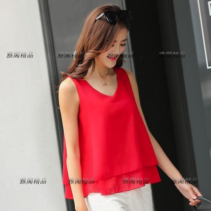優寶購物《ubao.Tw》特貨品商城,黑貓宅配,取貨付款,熱銷 夏季寬松大碼顯瘦V領雙層無袖雪紡背心吊帶女上衣打底衫短款外穿雙層雪紡背心-可開發票 | Yahoo拍賣
