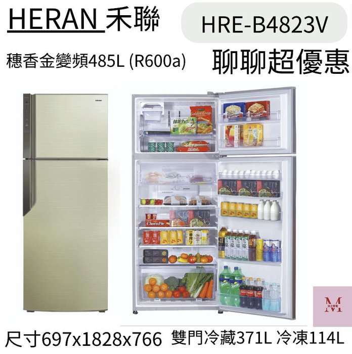 優寶購物《ubao.Tw》特貨品商城,黑貓宅配,取貨付款,禾聯【HRE-B4823V】485L變頻雙門電冰箱(穗香金) 一級節能(含標準安裝)*米之家電* | Yahoo拍賣