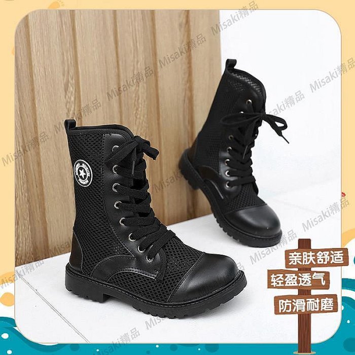 優寶購物《ubao.Tw》特貨品商城,黑貓宅配,取貨付款,【熱賣精選】兒童馬丁靴夏款透氣男童馬丁靴兒童單靴子新款黑色學生訓練表演靴 | Yahoo拍賣