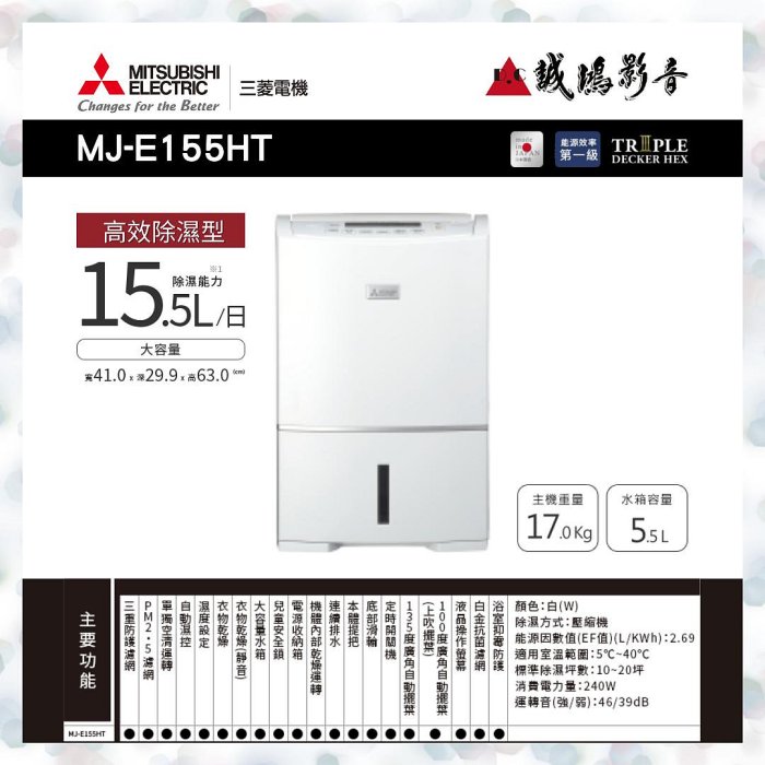 優寶購物《ubao.Tw》特貨品商城,黑貓宅配,取貨付款,有現貨喔!!【MITSUBISHI三菱】MJ-E155HT 此單為目錄 高效除濕型~歡迎詢價 | Yahoo拍賣