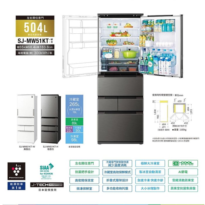 優寶購物《ubao.Tw》特貨品商城,黑貓宅配,取貨付款,SHARP夏普 504L 自動除菌離子左右開任意門變頻冰箱 SJ-MW51KT 另有特價 NR-F509XT NR-F559XT NR-F609XT | Yahoo拍賣