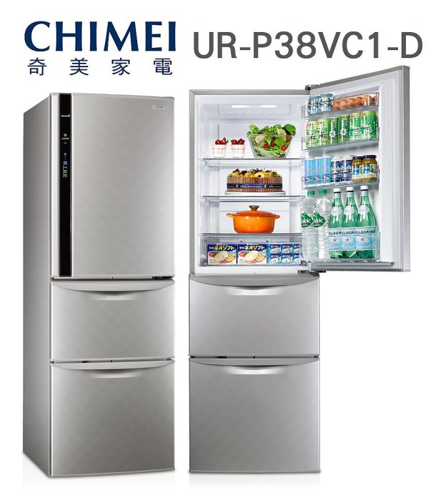 優寶購物《ubao.Tw》特貨品商城,黑貓宅配,取貨付款,CHIMEI奇美【UR-P38VC1-D】385公升 1級 變頻 三門冰箱 Ag 銀除菌 | Yahoo拍賣