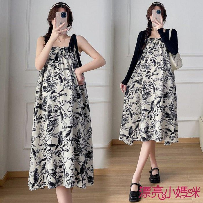 優寶購物《ubao.Tw》特貨品商城,黑貓宅配,取貨付款,漂亮小媽咪【D4990】 夏日 印花 細肩 蝴蝶結 綁帶 洋裝 孕婦裝 方領 韓系 實拍 不含罩衫外套 | Yahoo拍賣