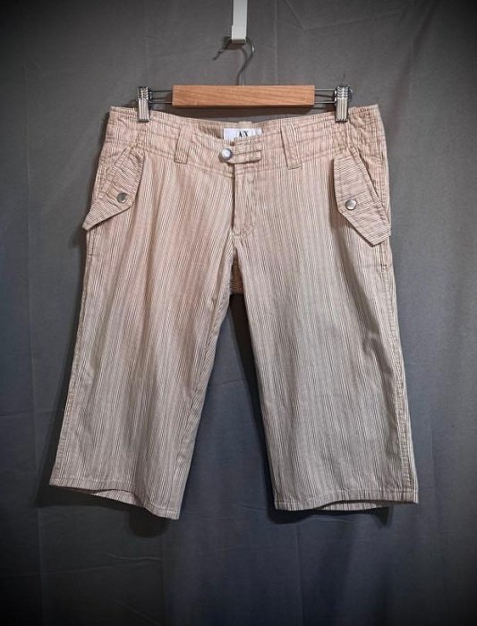優寶購物《ubao.Tw》特貨品商城,黑貓宅配,取貨付款,Armani exchange ax a/x 美拉德色直條紋五分休閒低腰短褲 馬褲 女 S 小尺碼 | Yahoo拍賣