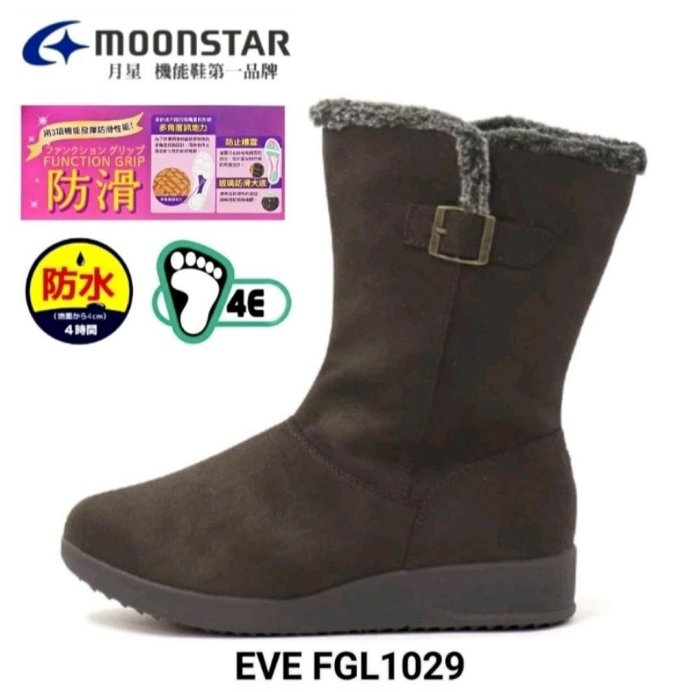 優寶購物《ubao.Tw》特貨品商城,黑貓宅配,取貨付款,日本Moonstar女款中筒4E寬楦防水防滑透氣保暖靴EVFGL1029(咖啡色) | Yahoo拍賣