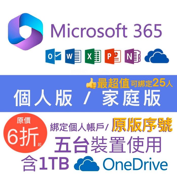 優寶購物《ubao.Tw》特貨品商城,黑貓宅配,取貨付款,微軟 Microsoft Office365 綁定個人版、家庭版 序號 5個裝置+1T Onedrive | Yahoo拍賣