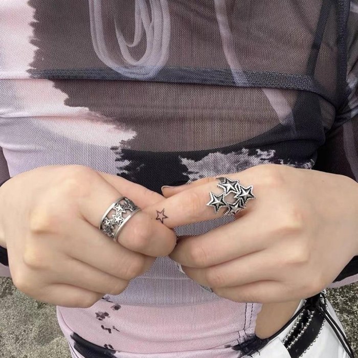 優寶購物《ubao.Tw》特貨品商城,黑貓宅配,取貨付款,(小燕子日韓小物) 【1613】復古做舊鏤空星星幾何開口戒指 暗黑龐克食指戒指環 | Yahoo拍賣