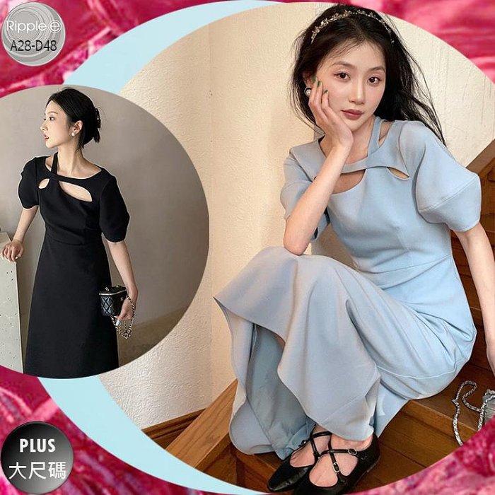 優寶購物《ubao.Tw》特貨品商城,黑貓宅配,取貨付款,大尺碼女裝 Rippleⓔ A28-D48 小黑裙 洋裝 中長裙 鏤空 春秋 | Yahoo拍賣