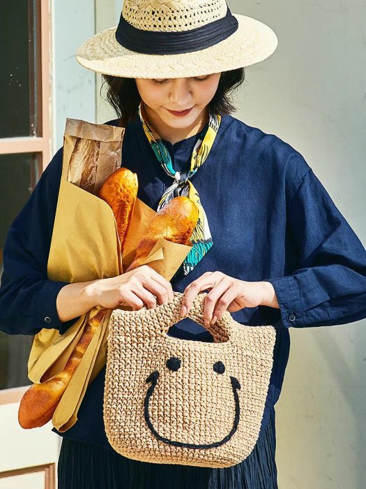 優寶購物《ubao.Tw》特貨品商城,黑貓宅配,取貨付款,日本棉線不刺微笑笑臉手提編織包水桶包 | Yahoo拍賣