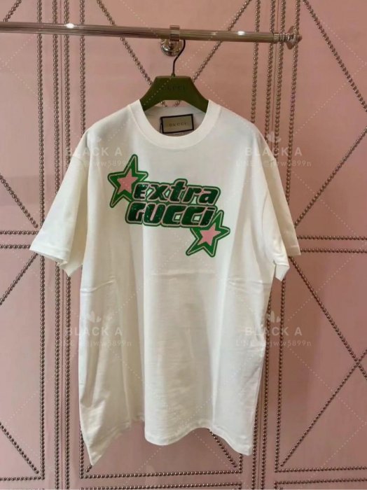 優寶購物《ubao.Tw》特貨品商城,黑貓宅配,取貨付款,【BLACK A】Gucci 24SS春夏新款 綠色亮片extra Gucci星星米白色短袖T恤 價格私訊 | Yahoo拍賣