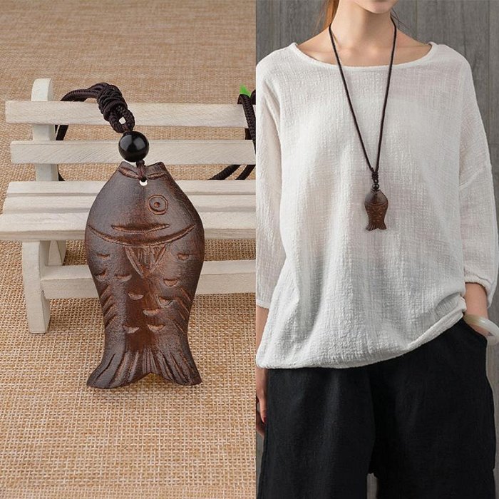 優寶購物《ubao.Tw》特貨品商城,黑貓宅配,取貨付款,(小燕子日韓小物) 《4830】民族風手工木魚雕刻吊墜長款項鍊 文藝復古豐收魚棉麻配飾毛衣鏈 | Yahoo拍賣