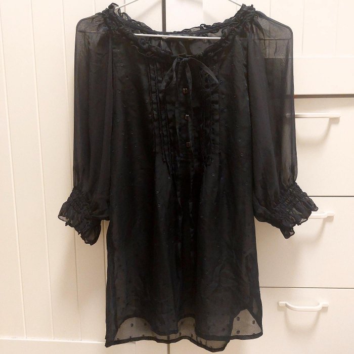 優寶購物《ubao.Tw》特貨品商城,黑貓宅配,取貨付款,日系水玉點點荷葉邊蝴蝶結壓褶深藍色雪紡五分袖圓領雪紡紗上衣 | Yahoo拍賣
