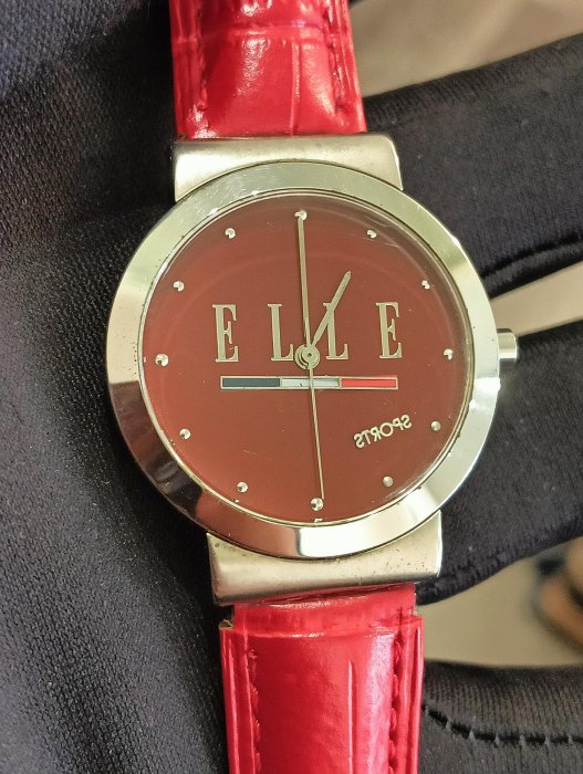優寶購物《ubao.Tw》特貨品商城,黑貓宅配,取貨付款,Elle 正版 Sports 酒紅色錶盤 Water Resistant 生活防水 可正常使用 中性石英錶-手圍20公分內 | Yahoo拍賣