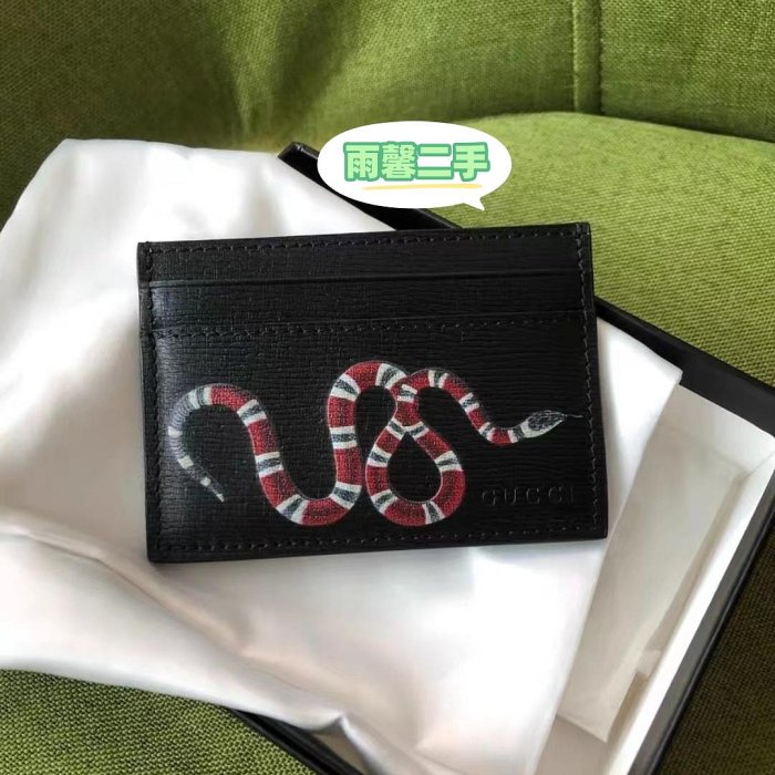 優寶購物《ubao.Tw》特貨品商城,黑貓宅配,取貨付款,雨馨二手 GUCCI 古馳 珊瑚蛇印花 皮革 卡包卡夾 黑灰色 現貨 | Yahoo拍賣