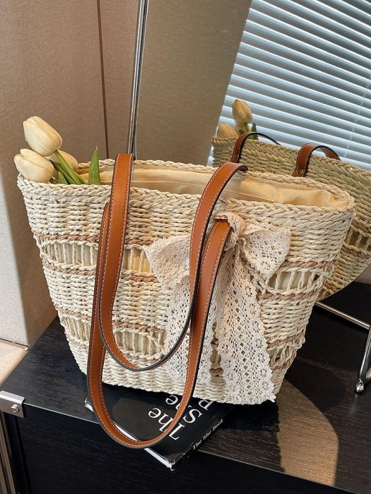 優寶購物《ubao.Tw》特貨品商城,黑貓宅配,取貨付款,現貨 針織包 大容量草編包包女包2024新款夏季時尚菜籃子包沙灘編織單肩托特包 | Yahoo拍賣