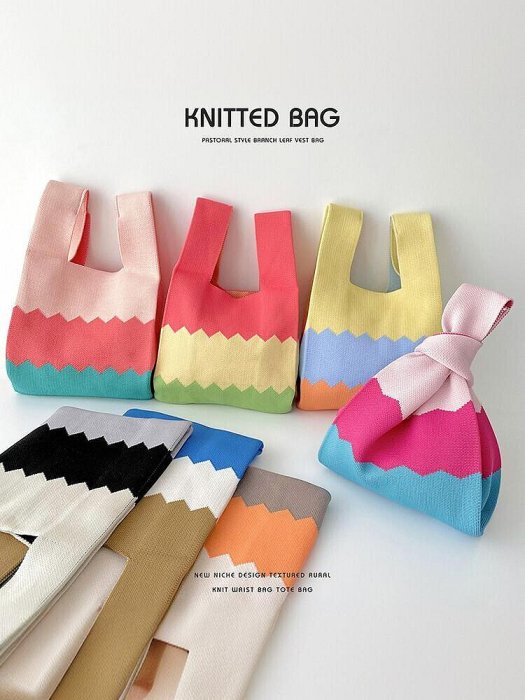 優寶購物《ubao.Tw》特貨品商城,黑貓宅配,取貨付款,現貨 針織包 潮流針織包包時尚手提包拼色手腕包背心包外出小拎包環保袋編織包 | Yahoo拍賣