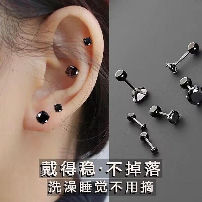 優寶購物《ubao.Tw》特貨品商城,黑貓宅配,取貨付款,黑色高級感耳骨釘耳釘女2023年新款潮夏季螺絲耳蝸釘耳堵耳環耳飾 | Yahoo拍賣