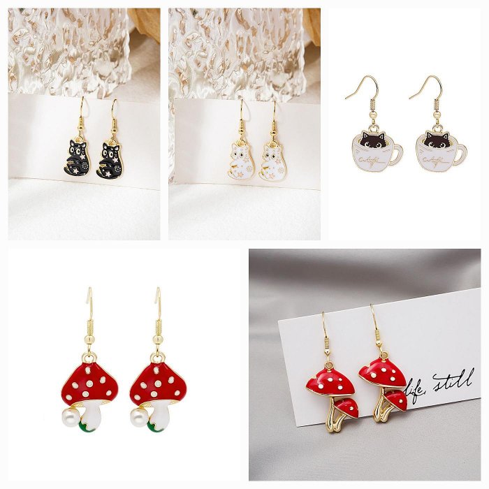 優寶購物《ubao.Tw》特貨品商城,黑貓宅配,取貨付款,(小燕子日韓小物) 【3939】歐美趣味卡通可愛小貓咪不對稱彩釉耳環 黑白貓咪金色耳墜 可愛蘑菇耳鈎 | Yahoo拍賣