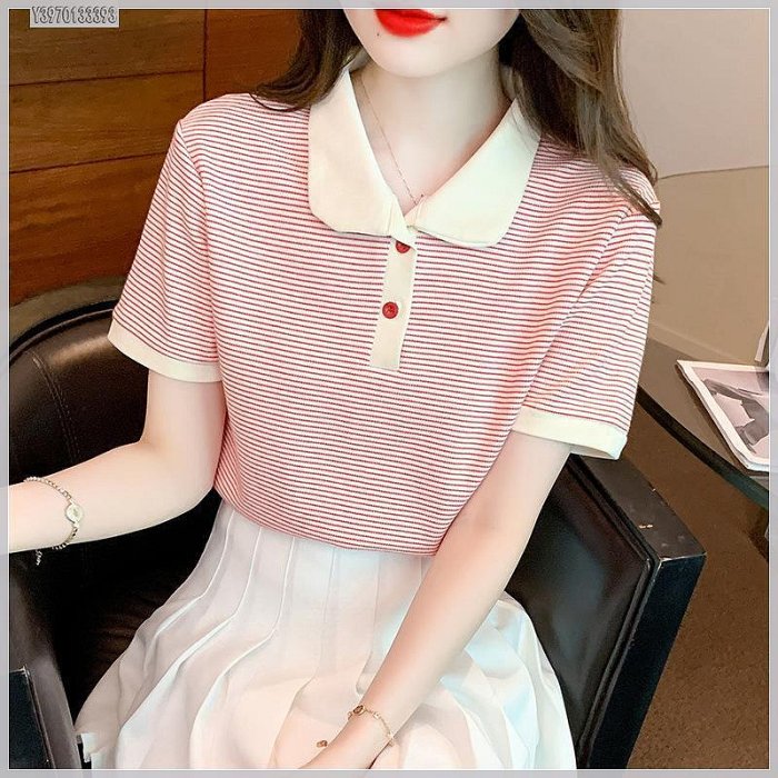 優寶購物《ubao.Tw》特貨品商城,黑貓宅配,取貨付款,女生衣服2024年夏季新款潮韓版簡約套頭針織面料POLO領條紋甜美短袖女百搭休閒通勤全新款女裝女款服飾 | Yahoo拍賣