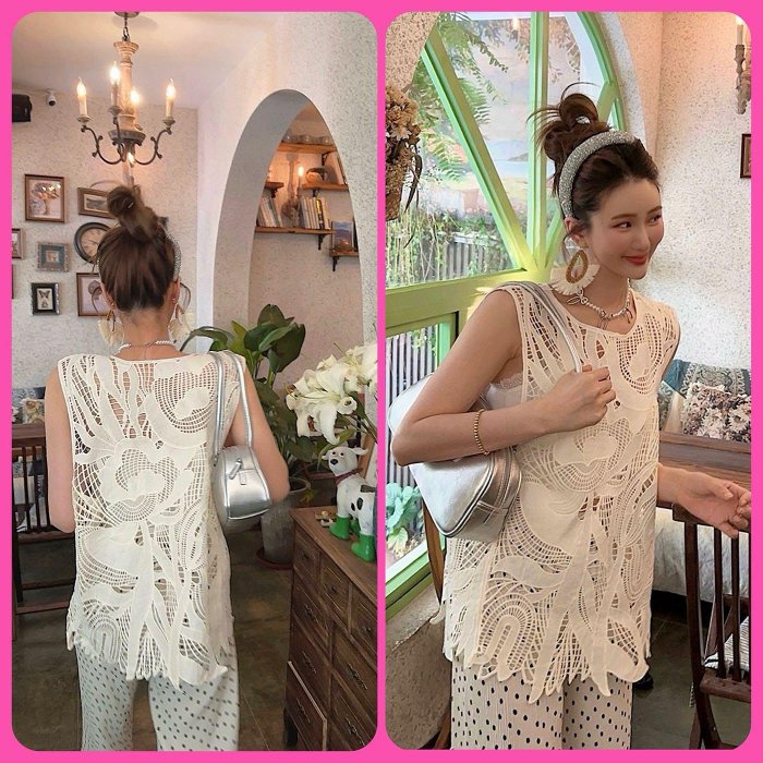 優寶購物《ubao.Tw》特貨品商城,黑貓宅配,取貨付款,ᴍᴀᴅᴇ ɪɴ ᴋᴏʀᴇᴀ 💛疊穿無袖馬甲鏤空雕花上衣 (3色) | Yahoo拍賣