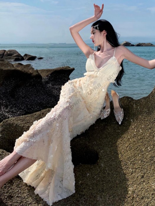 優寶購物《ubao.Tw》特貨品商城,黑貓宅配,取貨付款,小眾清冷感不對稱抽褶人魚姬亮片禮服裙女海邊度假連衣裙超仙氣質-kby科貝 | Yahoo拍賣