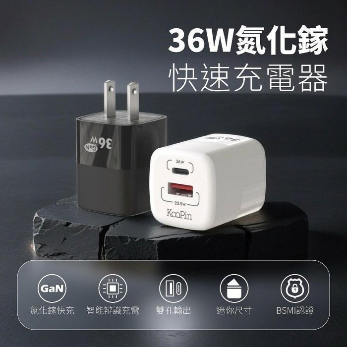 優寶購物《ubao.Tw》特貨品商城,黑貓宅配,取貨付款,KooPin 氮化鎵 36W快速充電器 充電器 TYPE-C充電器 iPhone15充電器 快速充電 | Yahoo拍賣