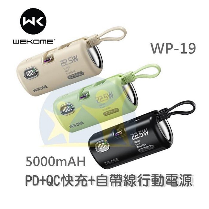 優寶購物《ubao.Tw》特貨品商城,黑貓宅配,取貨付款,現貨『WEKOME WP-19』 5000mAh PD+QC快充+自帶線 行動電源【享知足】 | Yahoo拍賣