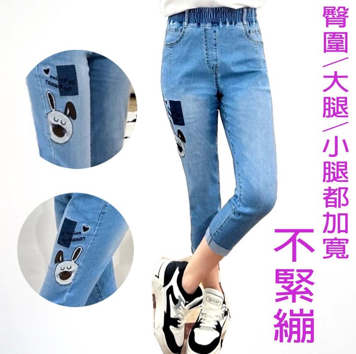 優寶購物《ubao.Tw》特貨品商城,黑貓宅配,取貨付款,現貨《2L.3L》中腰5501伸縮腰頭淺色系兔兔造型彈性七分褲牛仔褲反折褲/大尺碼牛仔褲【時尚Tina】鑽石比例 | Yahoo拍賣