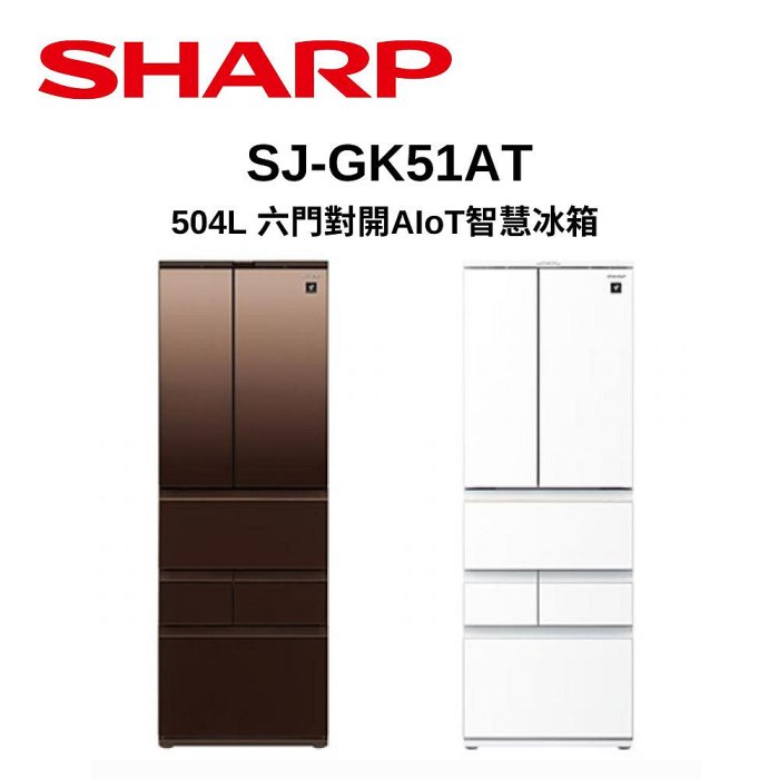 優寶購物《ubao.Tw》特貨品商城,黑貓宅配,取貨付款,SHARP夏普 504公升 六門對開AIoT智慧冰箱 SJ-GK51AT 另有特價 RHS54TJ RHSF53NJ RSF62NJ | Yahoo拍賣