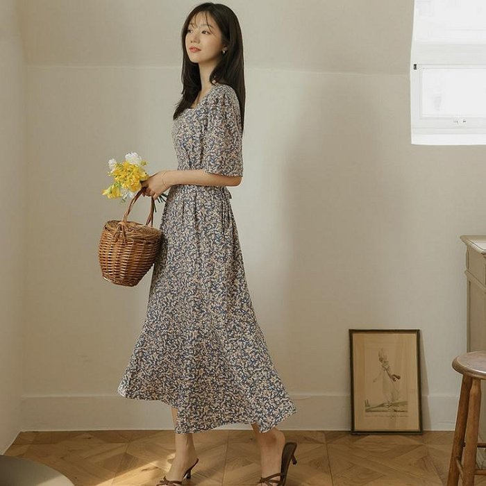 優寶購物《ubao.Tw》特貨品商城,黑貓宅配,取貨付款,Bellee 正韓 方領小花朵腰身混紡短袖魚尾洋裝 (2色) 【0726-75】 | Yahoo拍賣