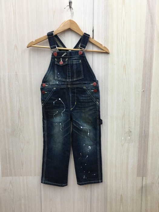 優寶購物《ubao.Tw》特貨品商城,黑貓宅配,取貨付款,【愛莎&嵐】 EDWIN 牛仔褲 童 藍色潑漆造型牛仔吊帶褲/4 (全新) 11308 21 | Yahoo拍賣