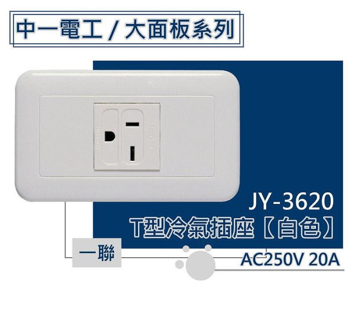 優寶購物《ubao.Tw》特貨品商城,黑貓宅配,取貨付款,中一電工 PANDA系列 JY-3620 T型冷氣插座 附蓋板 大面板 連蓋冷氣插座 白色 | Yahoo拍賣