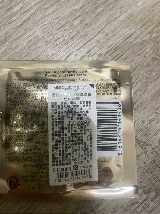 優寶購物《ubao.Tw》特貨品商城,黑貓宅配,取貨付款,【 LANCOME】蘭蔻 絕對完美永生玫瑰肽金逆時眼霜 1ML(保存2026-10)試用包 | Yahoo拍賣