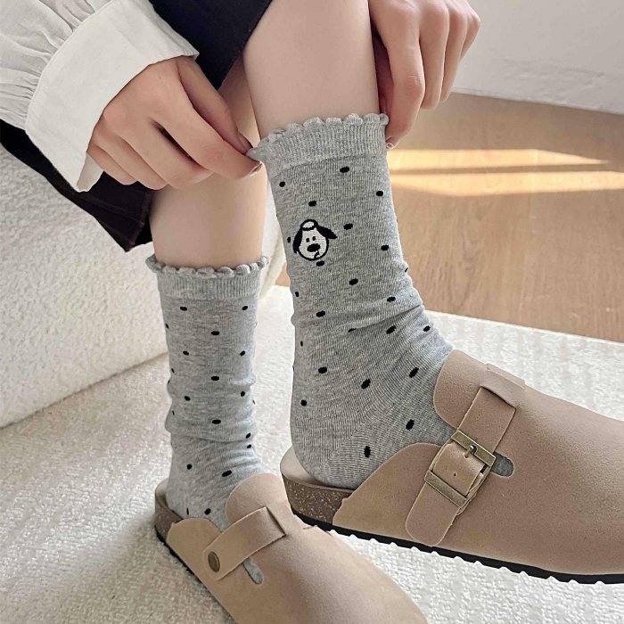 優寶購物《ubao.Tw》特貨品商城,黑貓宅配,取貨付款,(限時優惠)新款可愛刺繡小狗中筒襪 女襪 卡通圖案襪子 棉襪 堆堆襪 | Yahoo拍賣